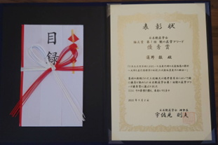 9月2日、神奈川県鎌倉市・鎌倉芸術館で行われた日本靴医学会総会において表彰式があり、宇佐見則夫日本靴医学会理事長より、表彰状と副賞が贈られました。