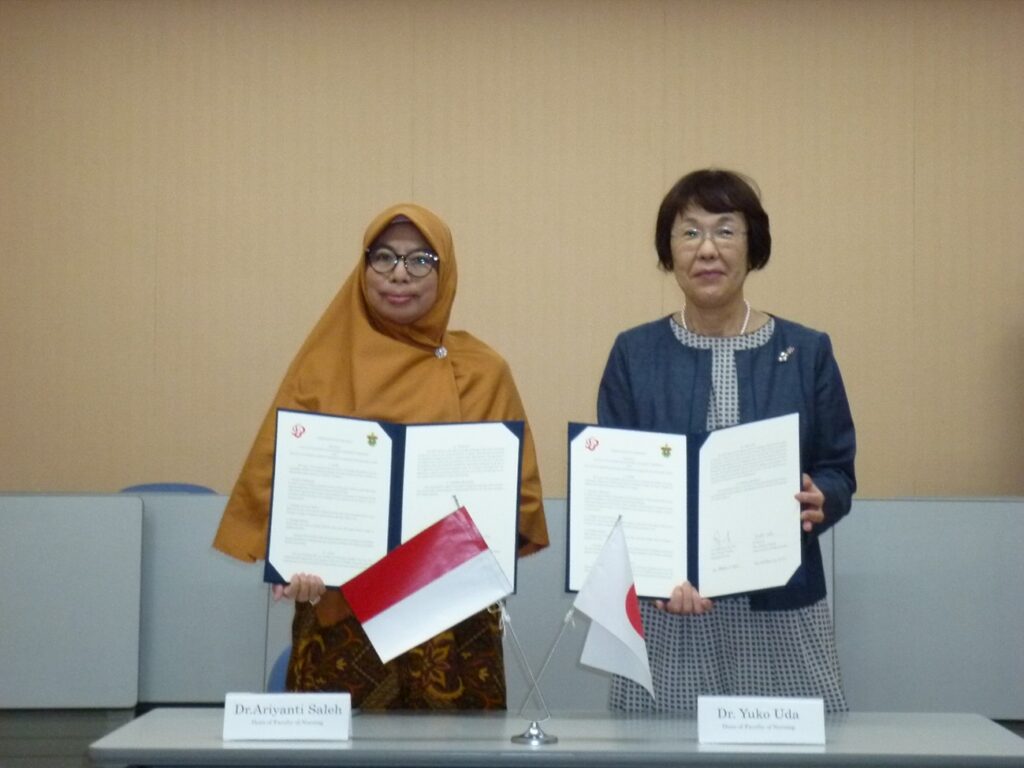10月10日(月)、インドネシアのハサヌディン大学からAriyanti Saleh看護学部長をはじめとした4名の先生方を本学にお迎えし、双方の大学の看護学部間で交流協定を締結しました。