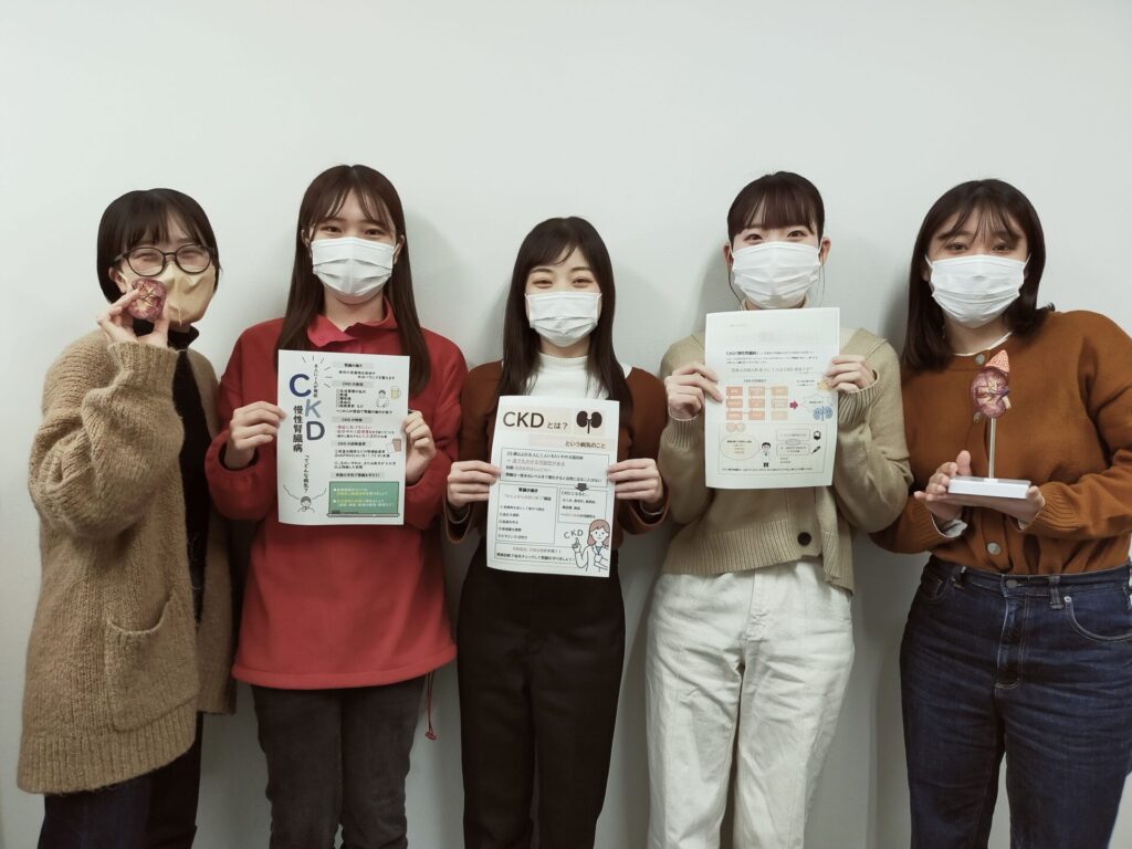 今や成人の8人に1人がCKDと言われていますが、認知度が低いことが課題となっています。さまざまな世代にCKDを発信すべく、健康栄養学科3年生14名の作成したリーフレットが会場で展示されます。