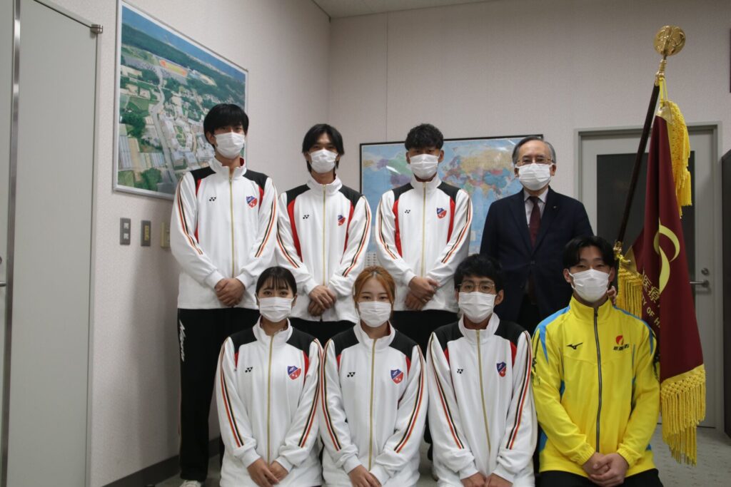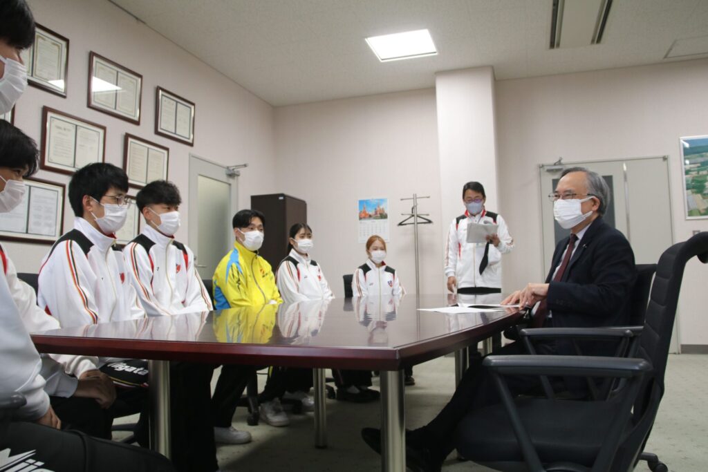 社会福祉学科の学生が第22回全国障害者スポーツ大会(新潟県・新潟市選手団)への派遣報告のため、学長を訪問しました!
