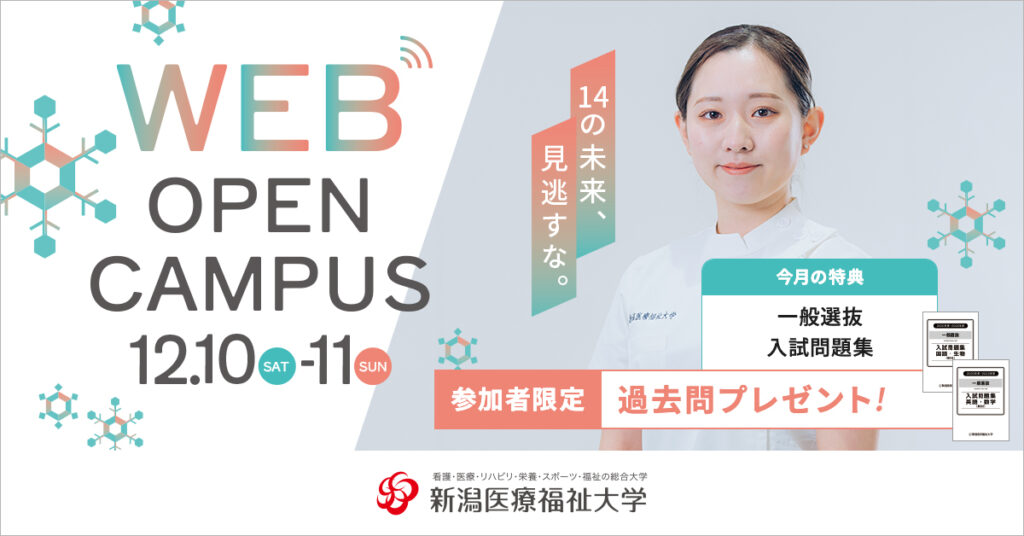 12月オープンキャンパスでは、10月~12月の連続企画第3弾として、WEBプレ入試&問題解説動画を公開します!