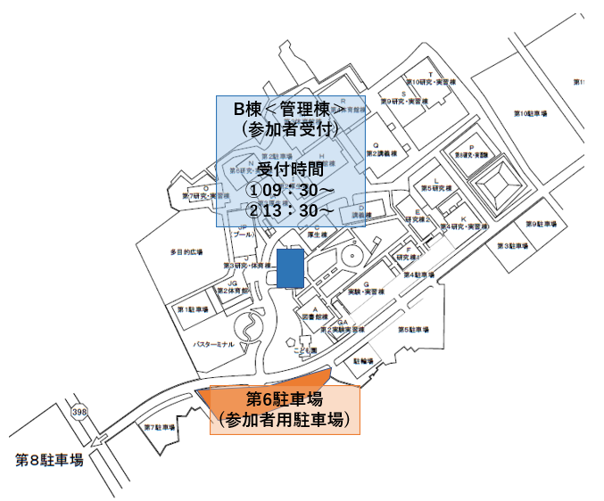 ※受付はB棟(管理棟)にて行います。