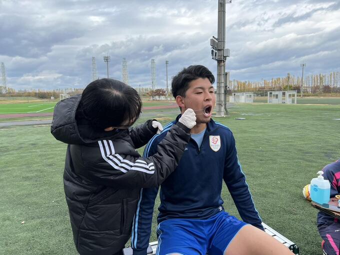 11月2週目から佐熊裕和教授(健康スポーツ学科,男子サッカー部監督)のご協力のもと,森山さん(理学療法学科3年,スポーツ医科学Lab,男子サッカー部学生トレーナー)と吉川さん(理学療法学科3年,スポーツ医科学Lab)を中心に平林怜講師(理学療法学科,スポーツ医科学Lab,アスリートサポート研究センター)との研究で,男子サッカー部のトップチームの選手を対象に,咬合機能が運動パフォーマンス(シュート,ヘディング)に及ぼす影響について研究しています!