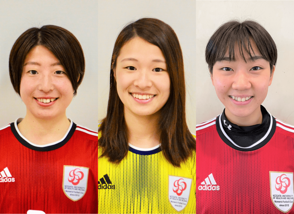この度、本学女子サッカー部の高山菜々香選手(写真左)・篠原沙耶選手(写真右)・和田涼花選手(写真中央)が、伊賀FCくノ一三重(なでしこリーグ1部)への2023シーズンの加入が内定しましたのでお知らせいたします。