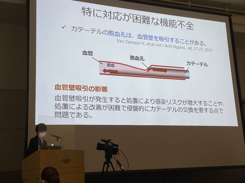血液浄化用カテーテルの機能不全を改善するシステムについて発表しました。初めての学会で,初めての発表は緊張しましたがとても良い経験ができました。