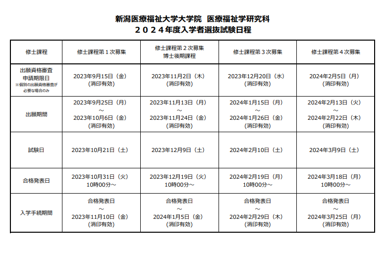 〒950-3198 新潟市島見町1398番地 新潟医療福祉大学 大学院入試事務室