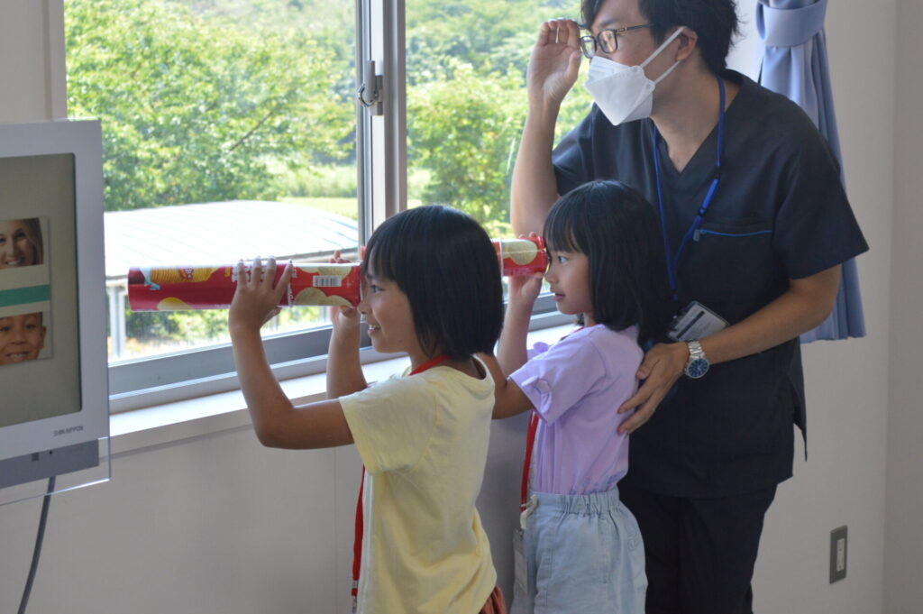 4日間毎日異なるプログラムを行いましたが、多くの子ども達とその保護者の皆さまにご参加いただきました。プログラムでは、子ども達にとって身近なお菓子の入れ物で望遠鏡を作ったりしながら、眼の仕組みについて楽しく学んでいただきました。子ども達がみな熱心にプログラムに取り組んでいる様子が印象的でした。