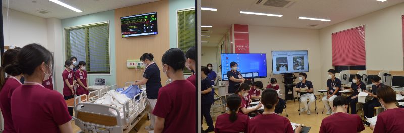 後半は本学看護学科のメディカルシミュレーション教育センターにて、高性能シミュレータを用いたシミュレーション研修を行いました。