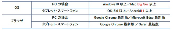 今後もOS/ブラウザのアップデートにより推奨環境が変更となる可能性がありますが、その場合でも以下【変更前】の推奨環境でWEB個人面接を受験することができます。