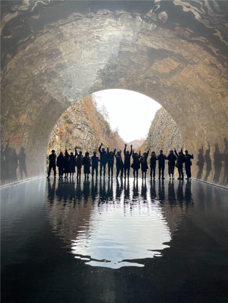 新潟から貸し切りバスに乗って、まずはSNS映えすると外国人からもとても人気のある観光スポット清津峡へ。留学生のみんなは大喜びで写真撮影を楽しんでいました。