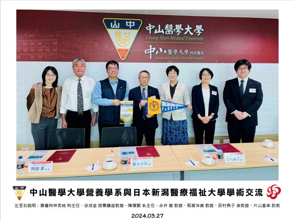 阿部薫教授(義肢装具自立支援学科)のご紹介のもと、2024年3月25日~3月29日まで健康栄養学科の教員4名が台湾の輔英科技大學(写真①)、中山醫学大學(写真➁)、弘光科技大學(写真③)の栄養系を訪問し、それぞれの大学と、学生との交流、教員による共同研究についての意見交換見交換が行われました。また、研究施設をはじめ、病院内の大量調理室や、大学院生や教員の研究室も見学させていただきました。