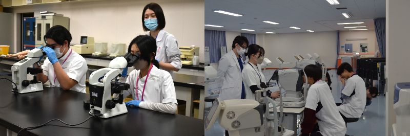 臨床検査技師の体験(左)、視能訓練士の体験(右)