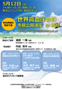 健康栄養学科の中村純子講師が5月12日(日)の「世界高血圧の日」に、新潟ユニゾンプラザで行われる市民公開講座に登壇します!