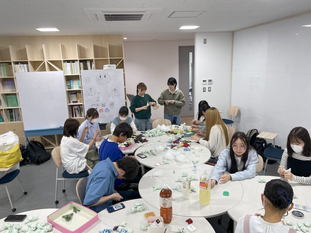今回、ねこピンチプロジェクトに参加し、楽しく作業しながらのボランティア活動ができました。私たちが作ったねこピンチの売上金は盲導犬へ寄付されると聞き、目の不自由な方への手助けにこうした形で少しでも関われると思うと嬉しくなりました。一つ一つを商品と見て丁寧に作るために少しの糸のほつれは直し、お客様に商品として喜んで受け取ってもらえるようにと思い丁寧に直しました。自分が受け取る側の立場になったらと思いながら気持ちを込めて作リました。多くの学科で協働して作業出来て達成感がありました。こうした形で誰かの役に立てたのかなと思うととても嬉しい気持ちになり、それと同時に多くの人にこの活動を知ってもらいたいと思うようになりました。また参加したいと思います。