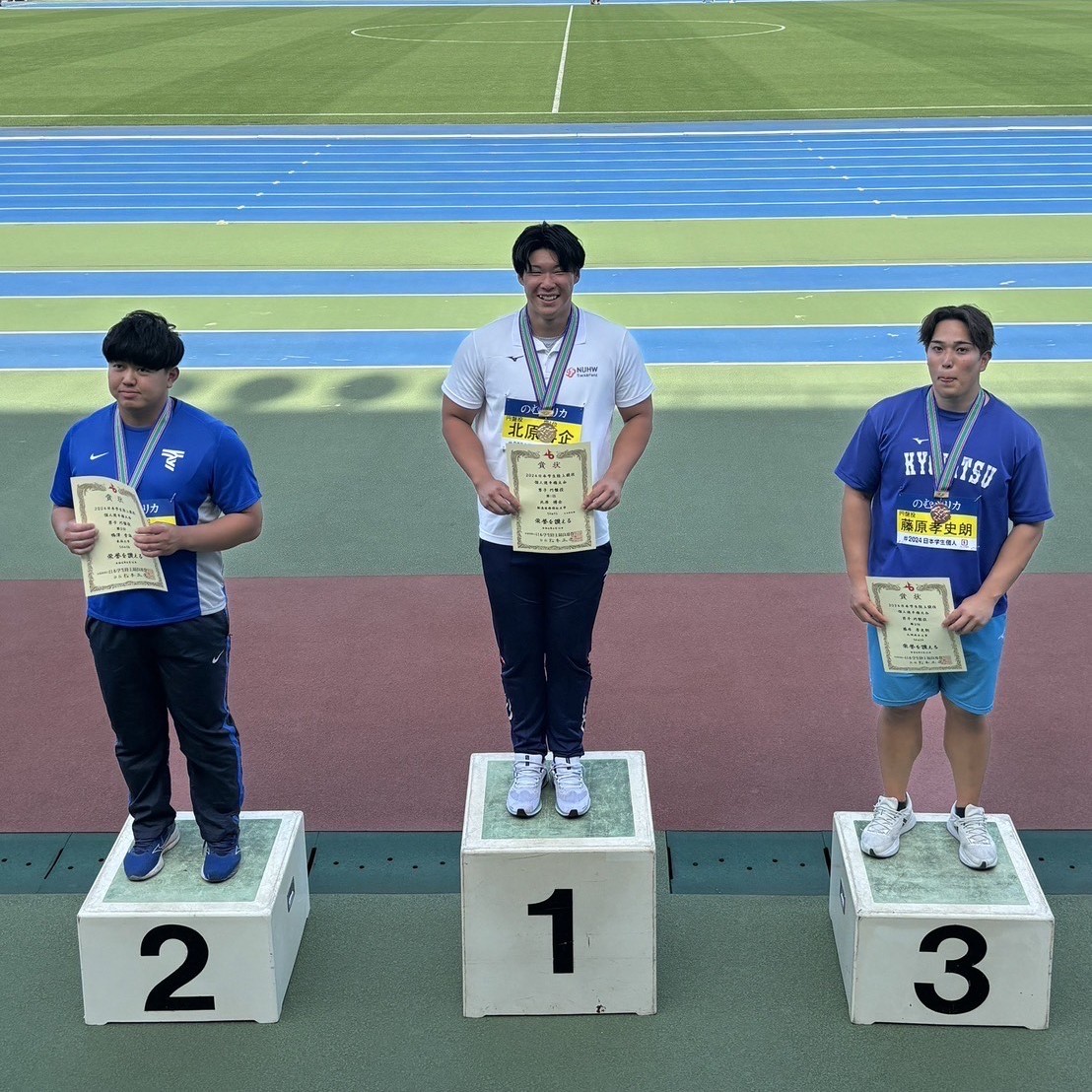 その中で、北原博企(健康スポーツ学科4年/開志国際高校)が男子円盤投で59m95で優勝し、見事連覇を果たしました!今回の記録は日本歴代6位、また学生歴代2位の記録でした。