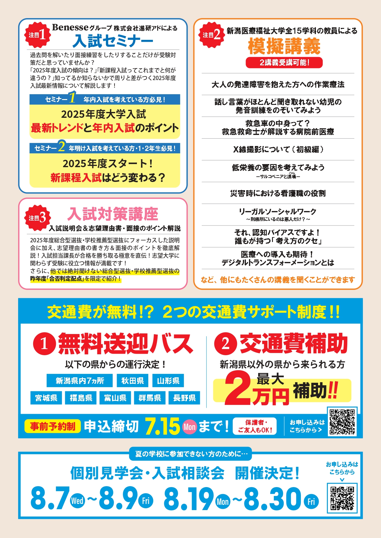 今回、受験生応援キャンペーンとして、「夏の学校」に参加いただくための2つの交通費サポートをご用意!