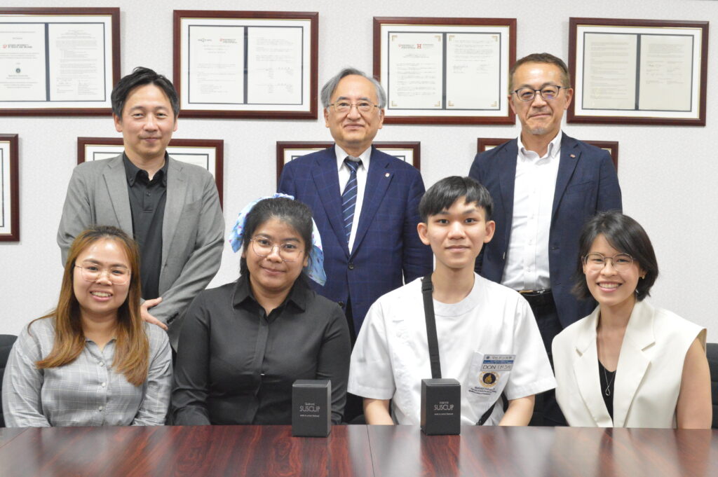 7月2日には、義肢装具自立支援学科の佐藤成登志学科長、神田賢准教授、そして本学の博士後期課程に在籍している2名のマヒドン大学卒業生とともに、西澤正豊学長を表敬訪問しました。和やかに懇談が行われ、西澤学長からは「本学での滞在が実り多いものになることを願っています」と激励を受けました。