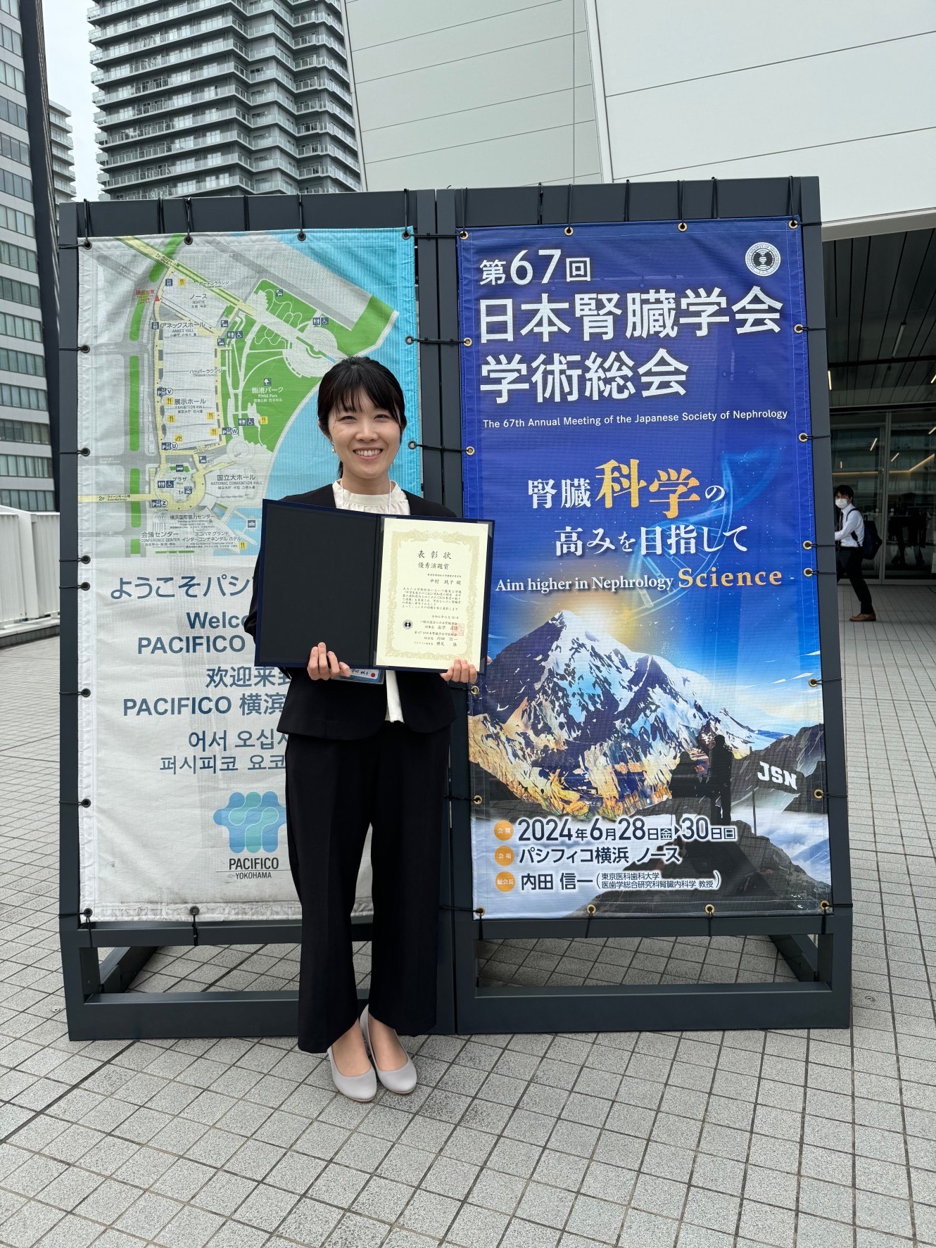 2024年6月28~30日にパシフィコ横浜で開催された第67回日本腎臓学会学術集会にて、健康栄養学科の中村純子講師の発表が優秀演題賞を受賞しました。