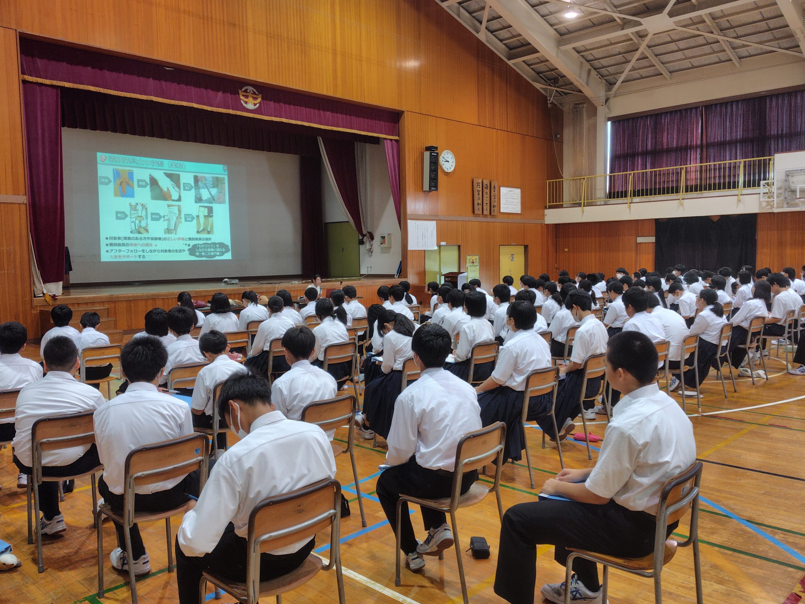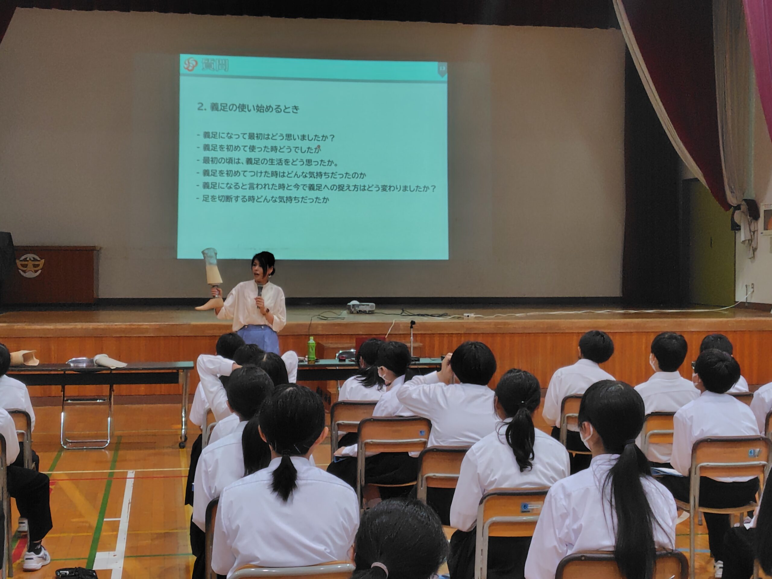 中学生は、初めて聞く義肢装具士の仕事の話に、関心を持って聞いていただいていました。