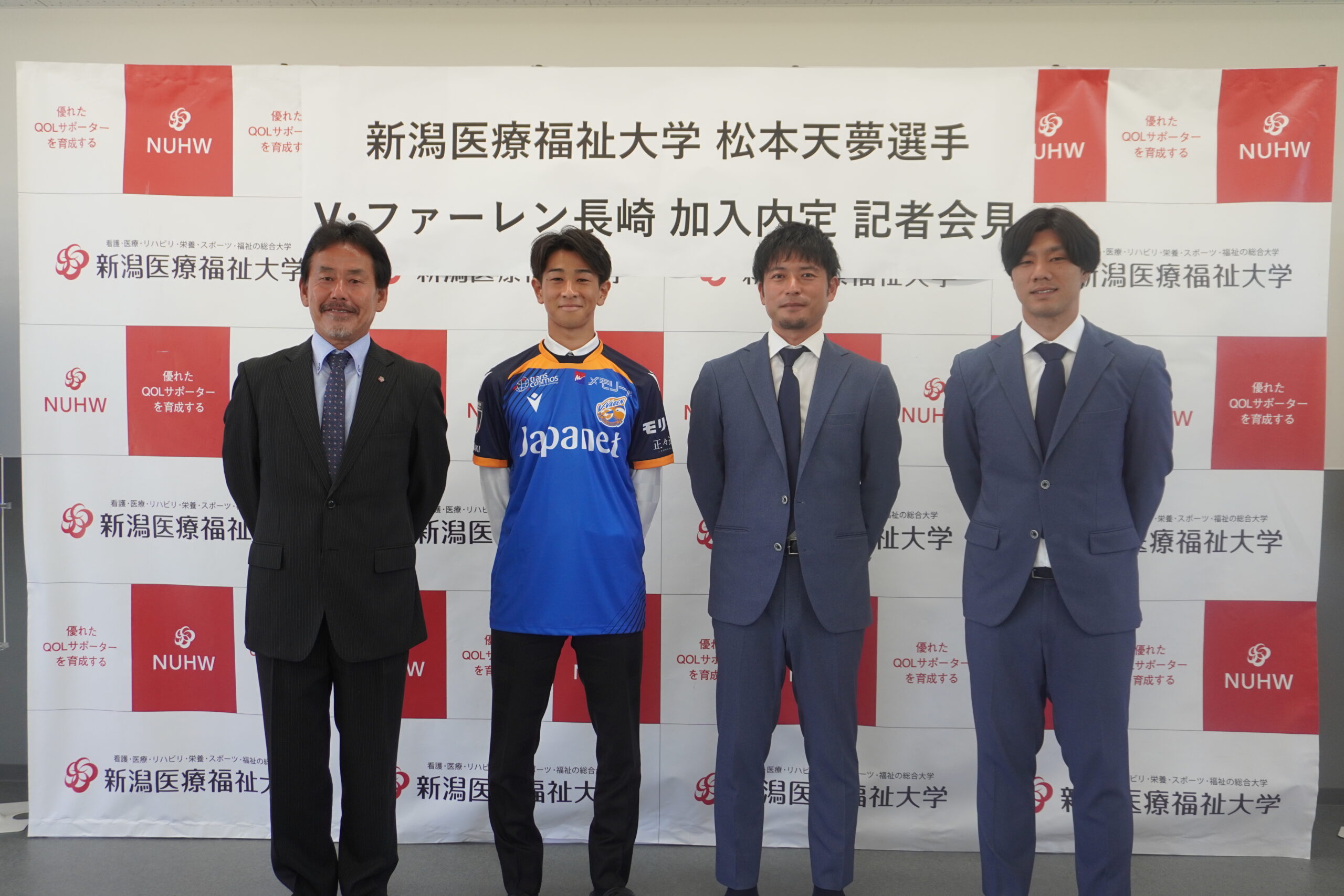 8月9日(金)男子サッカー部松本天夢選手 V・ファーレン長崎2025 シーズン新加入内定記者会見開催しました。 V・ファーレン長崎の関係者様にも出席いただき、獲得に至った経緯等もお話しいただきました。