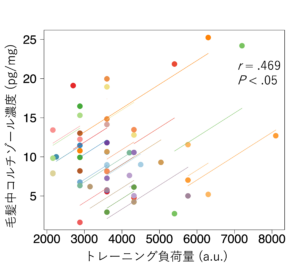 図2. 毛髪コルチゾールとトレーニング負荷量