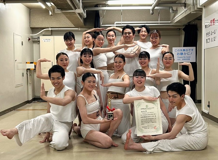 ダンス部は、8月6~9日神戸文化ホールにて行われた第36回全日本高校・大学ダンスフェスティバル(神戸)の大学創作コンクール部門に出場しました。現地での予選を通過し、決選へ進出。結果、クロスカルチャーへの新しい挑戦に対して贈られる特別賞を受賞しました。