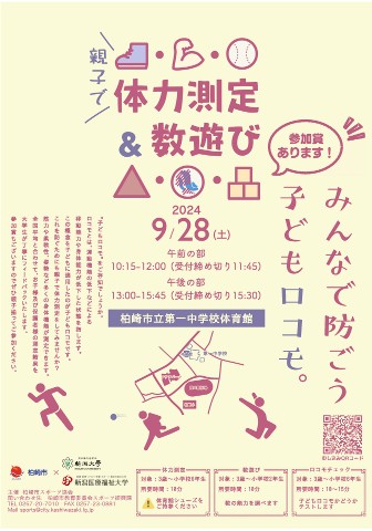 9月28日(土)に幼児~小学生を対象とした「親子で体力測定&数遊び&ロコモチェック」を開催しますのでお知らせいたします。近年、子どもたちの体力低下が叫ばれています。スポーツ庁が毎年実施している「体力・運動能力、運動習慣等調査」によると、子どもの体力は、新型コロナウイルス感染拡大前から低下し始め、コロナ禍の影響によってさらに低下傾向に拍車がかかりました。そして運動機能の低下による移動能力や身体能力が低下した状態のロコモティブシンドロームになる可能性が高まっています。