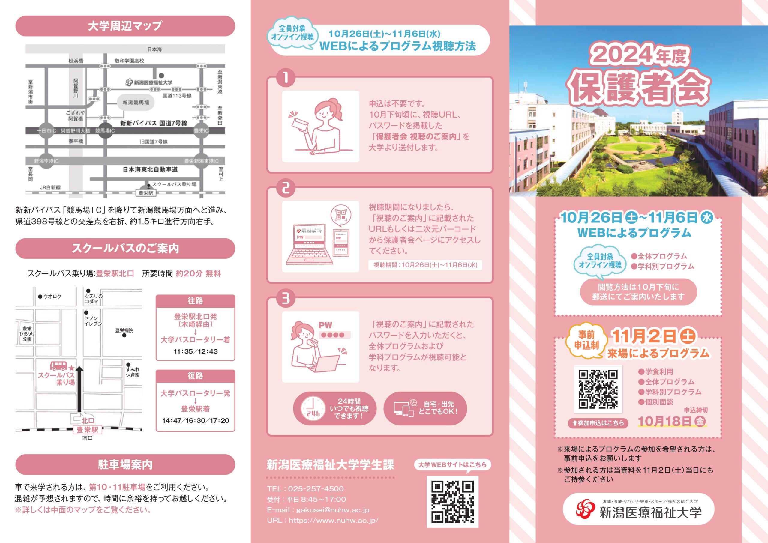 今年度は、オンライン開催に加えて、5年ぶりに来場型プログラムを実施いたします。保護者会に関する資料を郵送させていただきましたので、開催内容をご確認下さい。