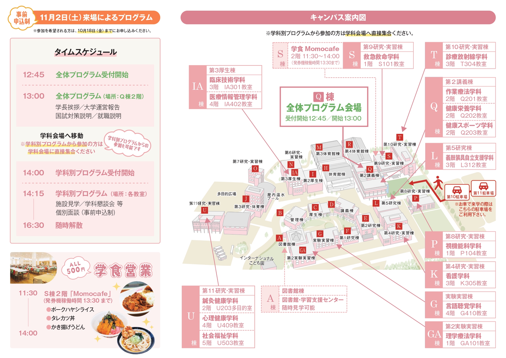<学科別プログラム> 施設見学、学科懇談会、個別面談(事前申込制) 他