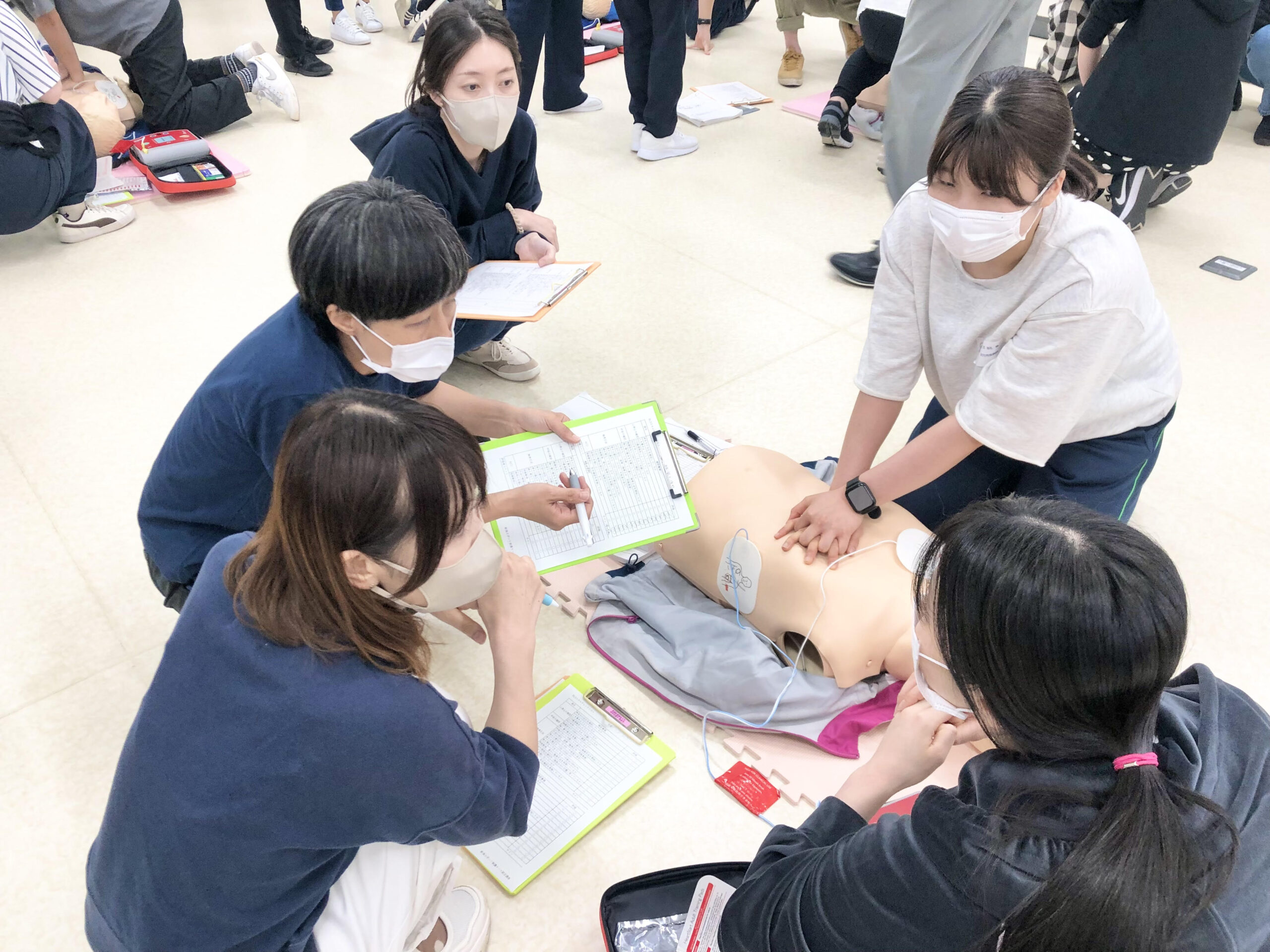 ■心肺蘇生やAEDなど一次救命処置(BLS)を学ぶ様子