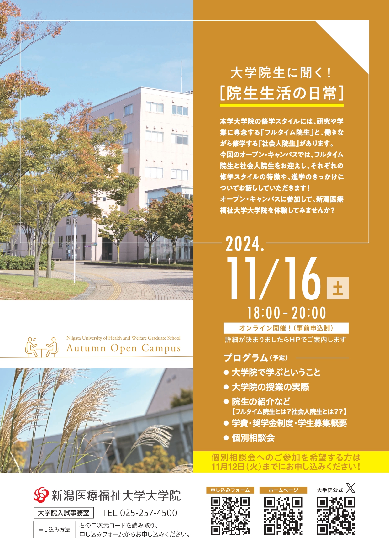 オープン・キャンパスに参加して新潟医療福祉大学大学院を体験してみませんか?