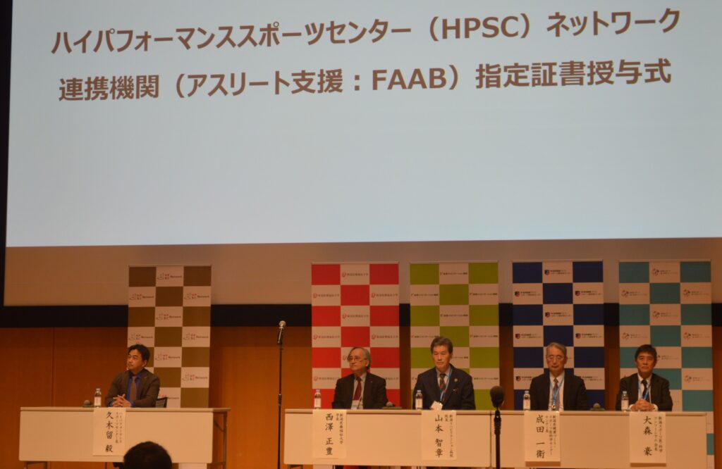 新潟医療福祉大学、新潟リハビリテーション病院、新潟県健康づくり・スポーツ医科学センターは、独立行政法人日本スポーツ振興センター(JSC)のハイパフォーマンススポーツセンター(HPSC)ネットワークの連携機関(アスリート支援:FAAB)に指定され、11月16日(土)に朱鷺メッセ(新潟市中央区)にて指定証書授与式を開催いたしました。