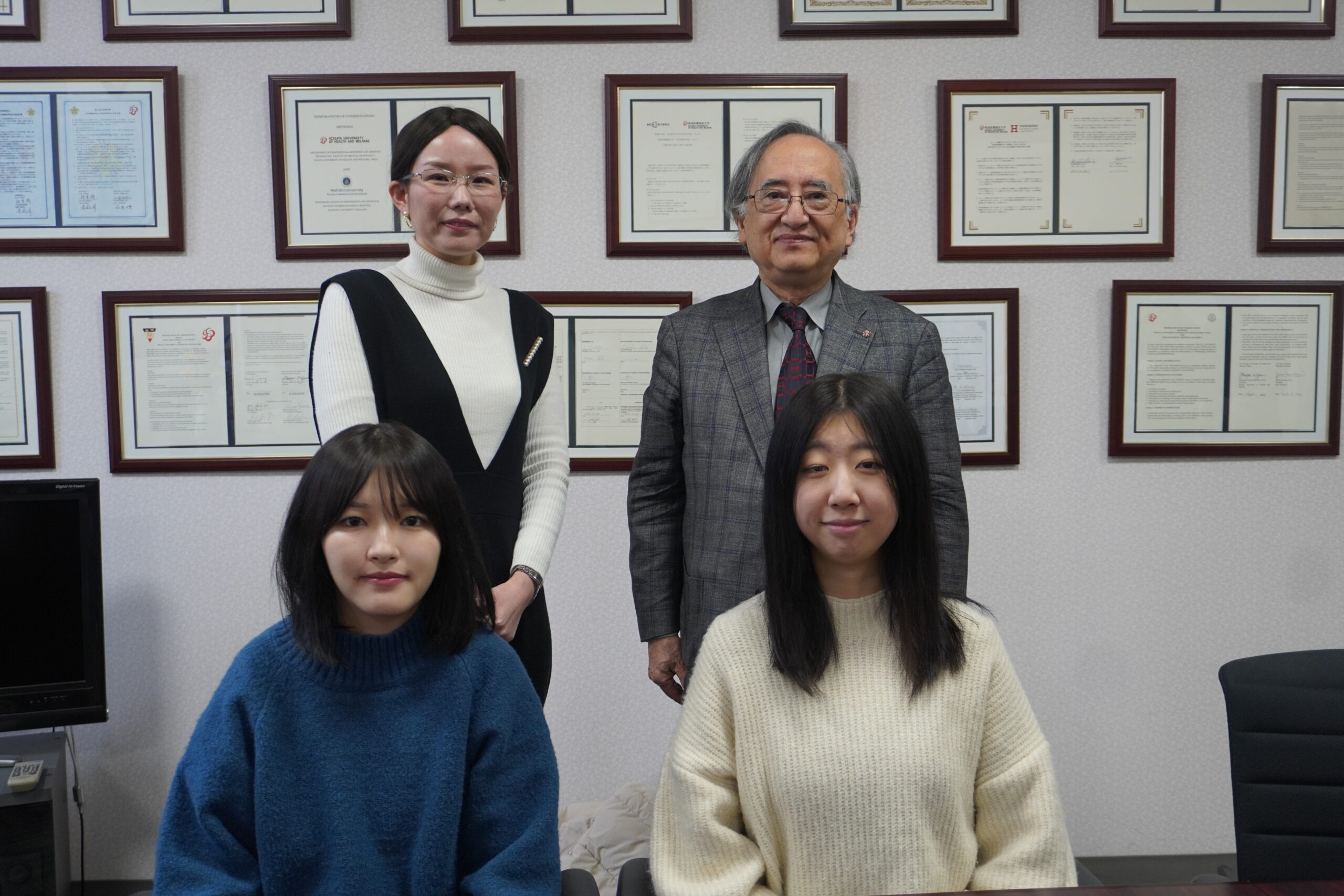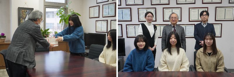 2024年11月29日、本学では、それぞれ人命救助に関わった臨床技術学科学生1名と社会福祉学科学生2名が学長を訪問し、