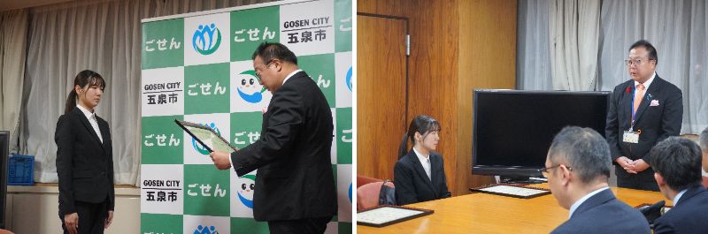 五泉市役所で田邊 正幸市長より感謝状をいただく際の様子