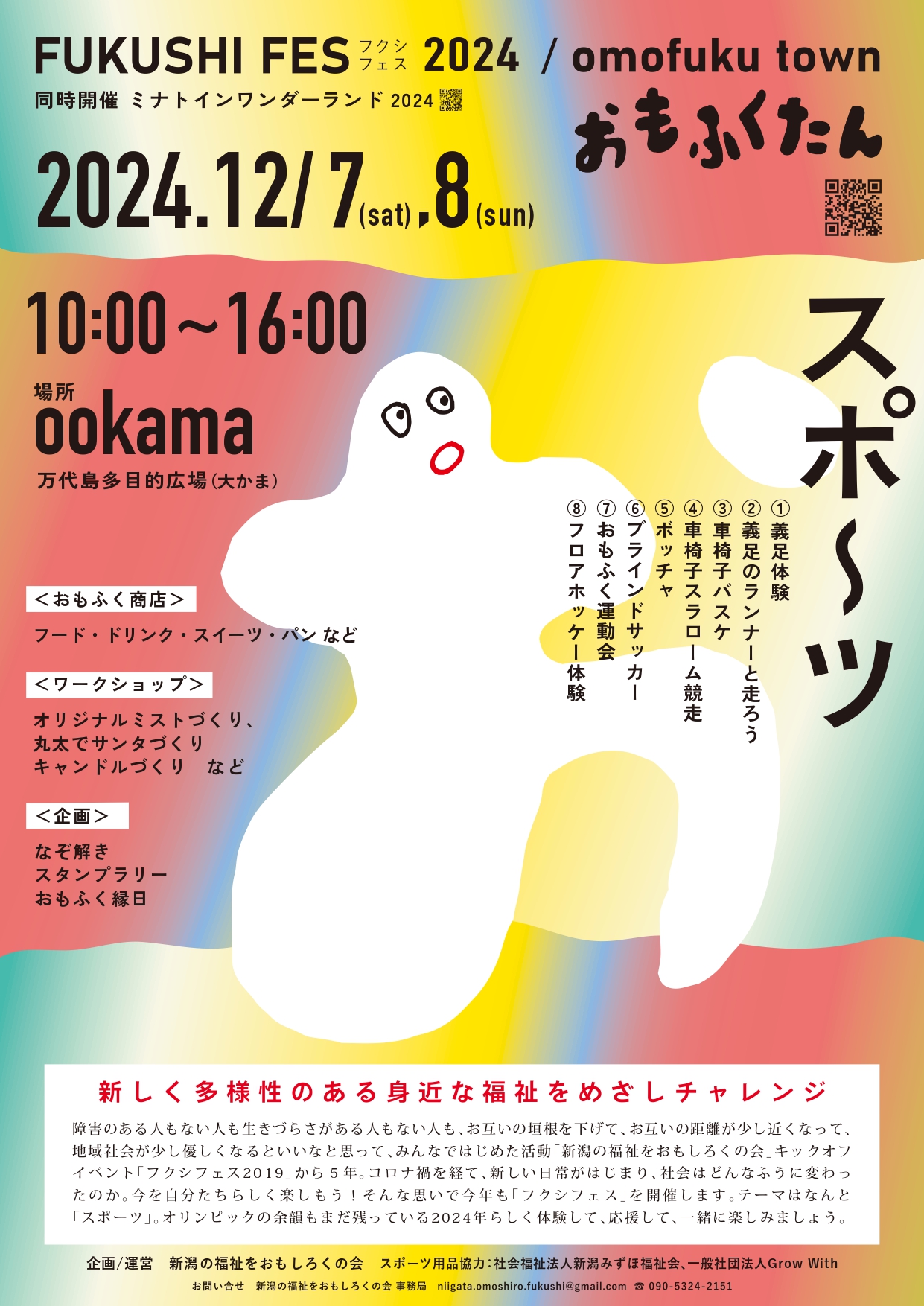 12月7、8日に、「FUKUSHI FES2024」(にいがたの福祉をおもしろくの会主催)が開催され、本学の義肢装具自立支援学科が参加いたしますのでお知らせいたします。本学は8日に「義足のランナーと走ろう」と題した陸上教室プログラムを担当いたします。