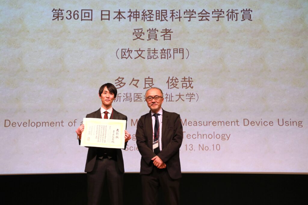 この度、新潟医療福祉大学視機能科学科の多々良 俊哉 助教の研究論文が、日本神経眼科学会学術賞を受賞しました!