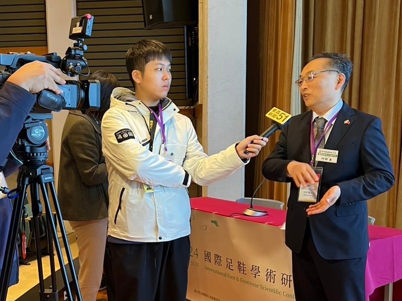 阿部教授は12/15(日)に台湾・台北市で行われた国際学会で「足圧分布測定と分析方法」をテーマに講演し、台湾のテレビ局・EBC東森電視と、新聞・聯合報(れんごうほう)の取材を受けました。