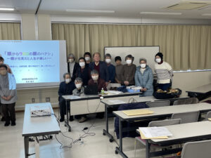 3.視覚は錯覚や心理的影響を受けやすく、ストレスが視界の揺れとして現れることもあることもお示ししました。本講座を通じて、眼の健康管理が生活の質(QOL)の向上に直結することを再認識しました。健康長寿のためには、眼の病気を早期に発見し、適切な治療を行うことが重要であることを説明しました。