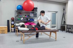 本学科では、全国最大規模の理学療法士養成校として、科学的根拠に基づいた最先端の教育を学ぶことができます。1・2 年次には理学療法に関する幅広い専門知識や技術を修得し、3年次には興味のある分野や将来の目標に合わせて専門領域に特化した知識や研究力を身につけられる研究グループに所属します。そのグループでは、国内最高水準の研究設備を活用し、複数の専門教員からきめ細かな指導を受けることで、自分の可能性を最大限に伸ばすことができます。