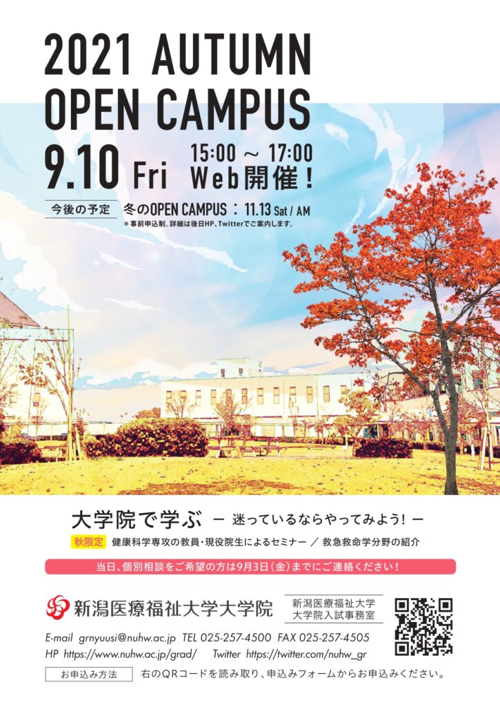 "大学院 秋のオープンキャンパス"を開催いたします。