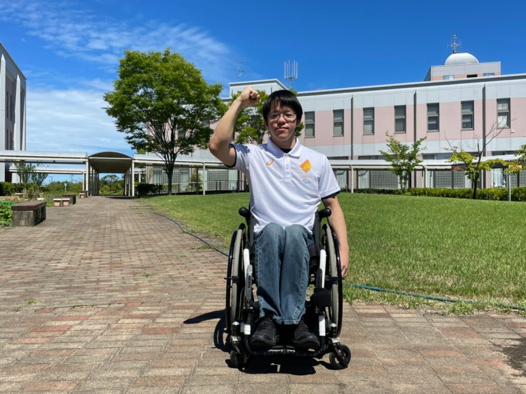 医療情報管理学科2年、新潟WBC(新潟車椅子バスケットボールクラブ)所属の知野光希です。このたびは、東京2020パラリンピックの聖火ランナーに選ばれました。新潟県の代表者として、新潟のさまざまな市町村から集められたみんなの想いのこもった火を東京にしっかり送り届ける事ができるように頑張ります!