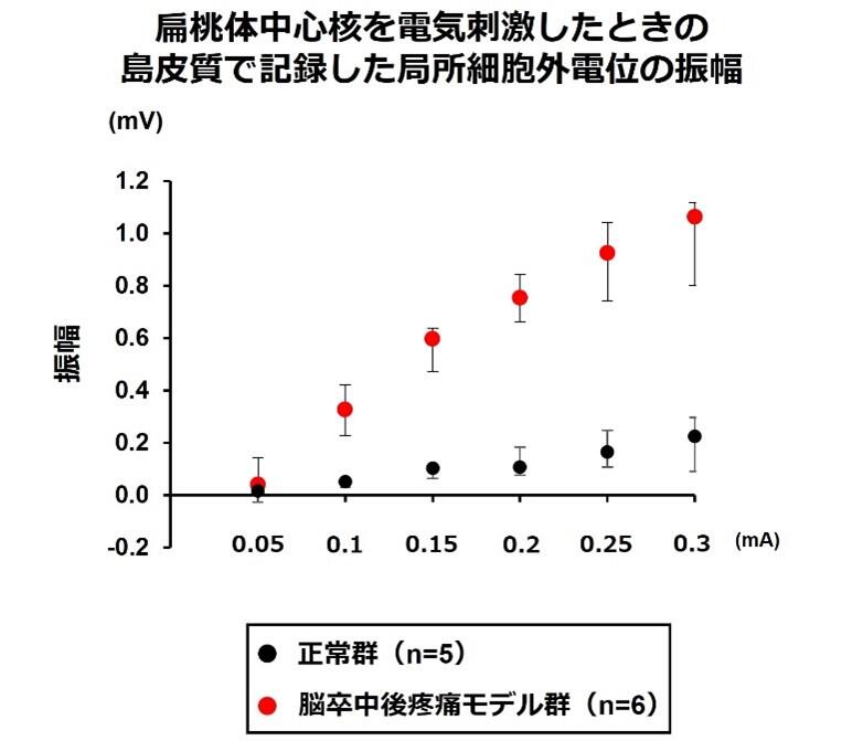 扁桃体中心核-島皮質経路の神経活動の増加が脳卒中後に生じる異常な痛みに関与すること示唆する結果となりました。