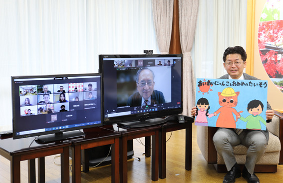 2022年3月18日(金)、福井県鯖江市への「眼の健康紙芝居贈呈式」を佐々木勝久鯖江市長、西澤正豊学長の参加の下、オンラインにて実施しました。