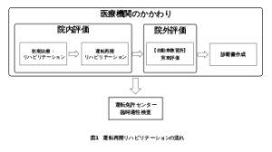 ・運転再開支援は、初期治療をへて病状が落ち着いた段階から開始となる。院内での評価、自動車教習所での実車評価、診断書を作成して、運転免許センターの臨時適性検査で判断される。