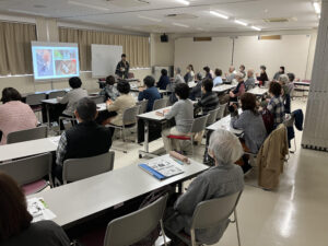 今年度の最初となる4月の講座は、4月24日(木)に葛塚コミュニティセンターで開講され、約60名の方々が受講されました。