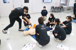 ■心肺蘇生やAEDなど一次救命処置(BLS)を学ぶ様子