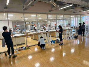 学生たちが一人ひとりの子どもを丁寧にサポートし、「保護者のために美味しいご飯を作る」という子どもたちの意欲的な姿が印象的でした。食後の片付けまで子どもたち自身で行いました。