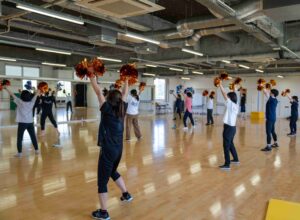 保護者には隣接するダンススタジオにてストレッチやダンスエクササイズ、チアダンスなど多彩なプログラムを体験いただきました。