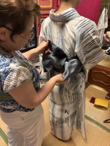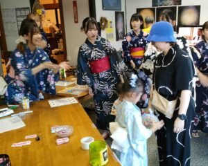 当日は学生ら7名が、貸出された浴衣や帯を地域の呉服店の協力により着付けいただき、イベントに参加しました。浴衣を通じた地域住民との交流や街歩きをきっかけとした店舗への関心の高まりなど、地域に新たなにぎわいが生まれました。
