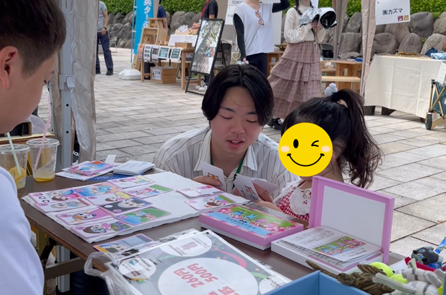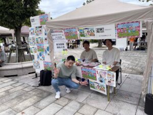 この度のフェスでは、本学の大学説明に加えて、さばえカードゲーム&おこさま応援ねこピンチプロジェクトを披露しました。
